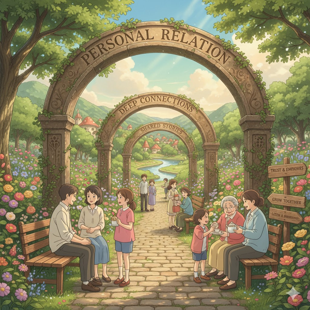 - 해석: 사람들 사이에서 발생하는 사회적, 심리적 상호작용 및 연결의 총체.