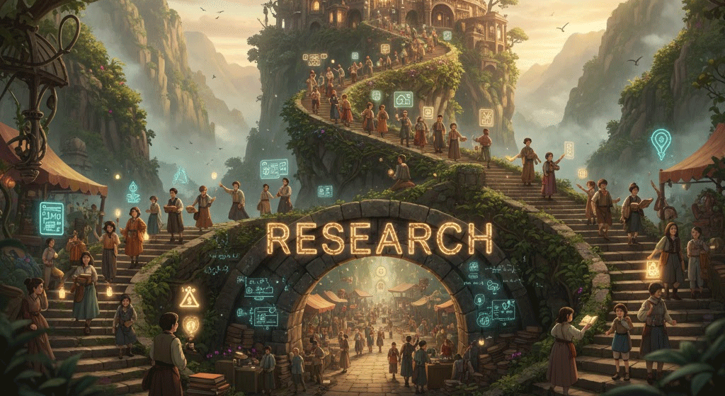 | 고대 프랑스어 recerche (다시 찾음, 수색) | "철저하고 반복적인 수색" | 학술/과학 연구 → 시장/데이터 조사 → 새로운 지식의 발견 |