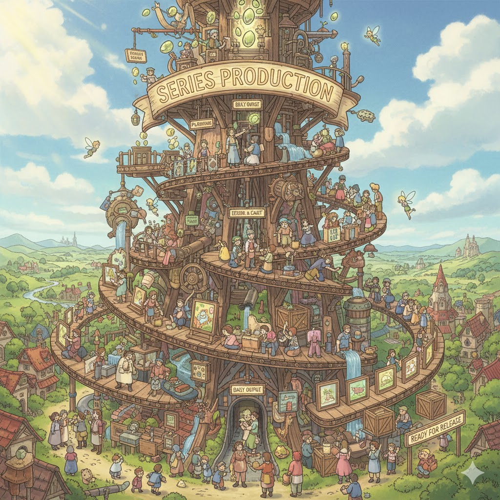 (명사) 연속 생산, 시리즈 제작