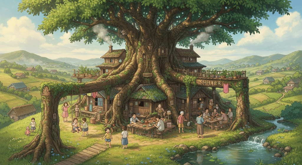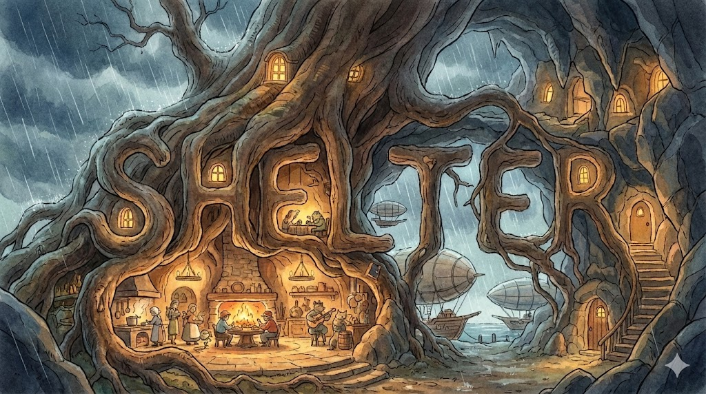 shelter는 **'방패'**라는 어원에서 알 수 있듯이, 외부의 부정적인 힘(날씨, 공격, 위험)을 적극적으로 막아내고 안심할 수 있는 공간을 핵심 뉘앙스로 가집니다. 이는 물리적인 건물이나 임시 구조물(피난처)일 수도 있고, 법적 제도나 심리적 안정을 제공하는 수단(보호)일 수도 있습니다. 핵심은 **'위협으로부터의 안전한 격리'**입니다.