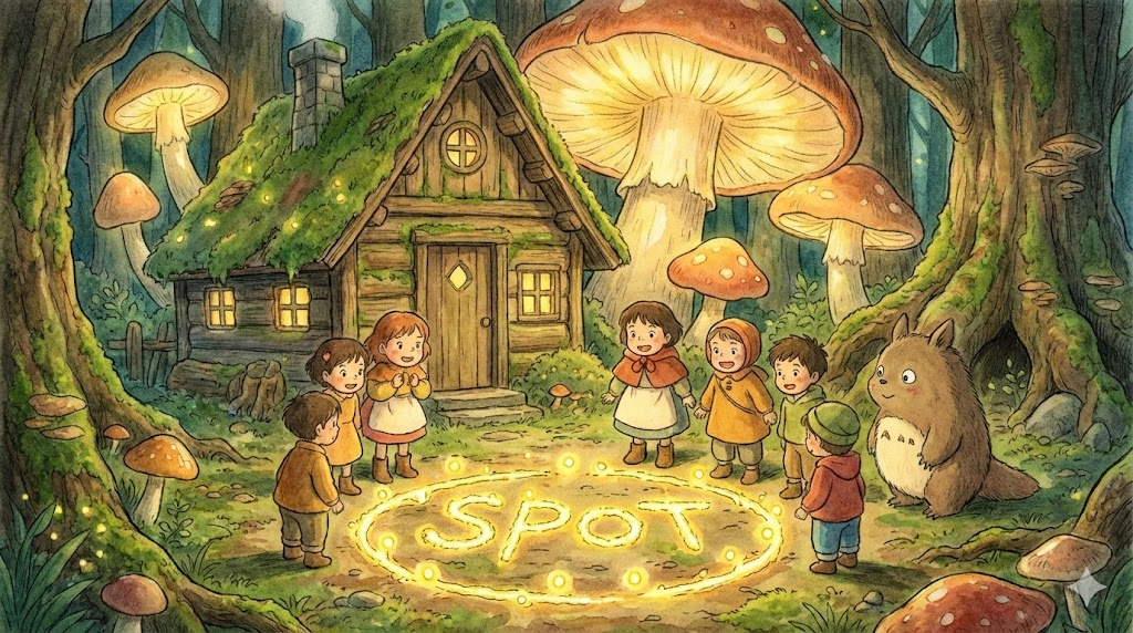 spot은 '작은 점' 이라는 시각적 개념을 통해, 옷의 얼룩, 지도상의 장소, 그리고 시야에 들어온 목표물을 발견하는 행위까지, '집중된 하나의 포인트' 를 나타내는 감각적인 단어입니다.