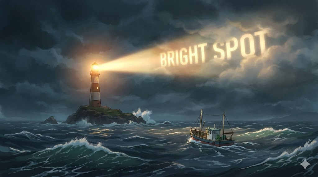 - 예문: The only bright spot in the gloomy economic report was the growth in renewable energy. (우울한 경제 보고서에서 유일한 희망적인 부분은 재생 에너지의 성장이었다.)