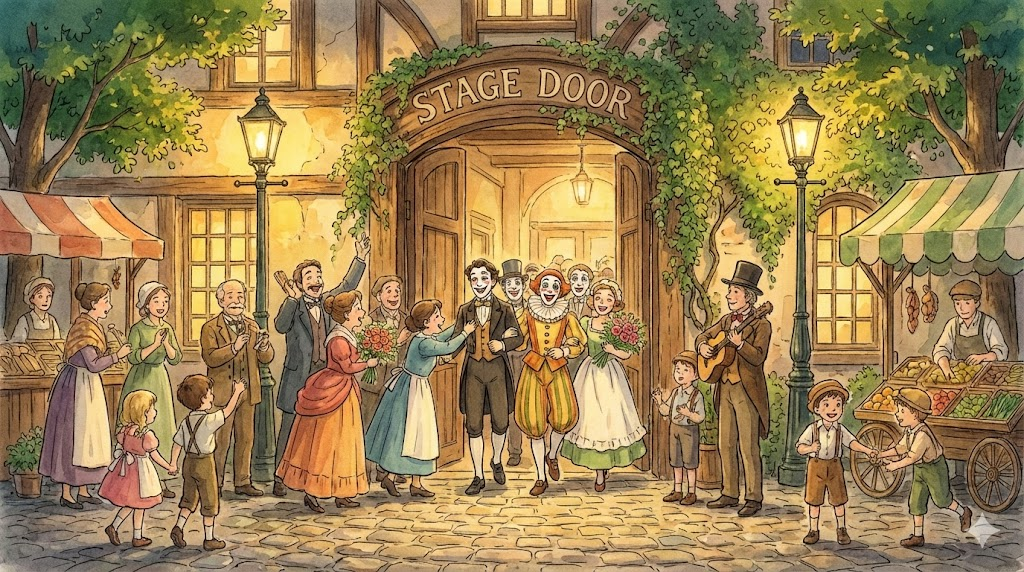 일반 관객이 아닌 배우, 스태프, 극장 관계자들이 출입하는 문을 의미합니다. 공연이 끝난 후 팬들이 배우를 만나 사인이나 사진을 요청하기 위해 기다리는 장소로도 유명합니다.