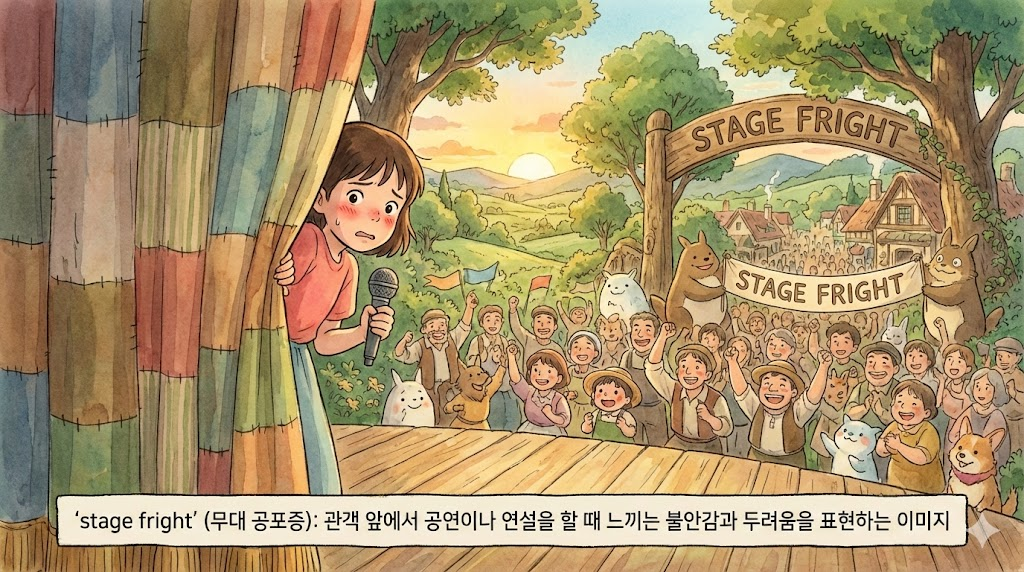 - 예문: Even experienced performers can suffer from stage fright before a big show. (경험 많은 공연자들도 큰 쇼 전에는 무대 공포증을 겪을 수 있다.)