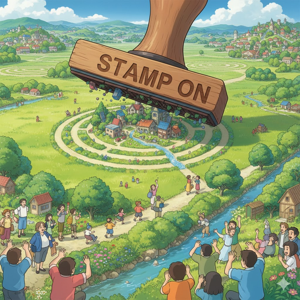 - 해석: 내용을 제대로 검토하지 않고 무비판적으로 승인하거나, 그런 역할을 하는 기관이나 사람. (비판적 맥락)