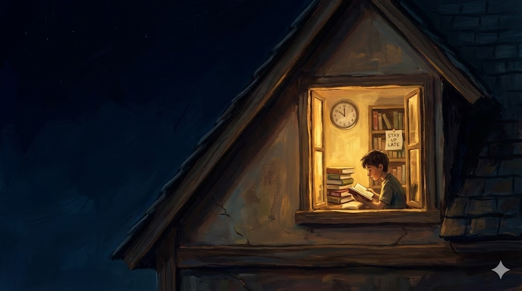 - 해석: 평소 자는 시간보다 늦게까지 잠자리에 들지 않고 깨어 있는 행위.