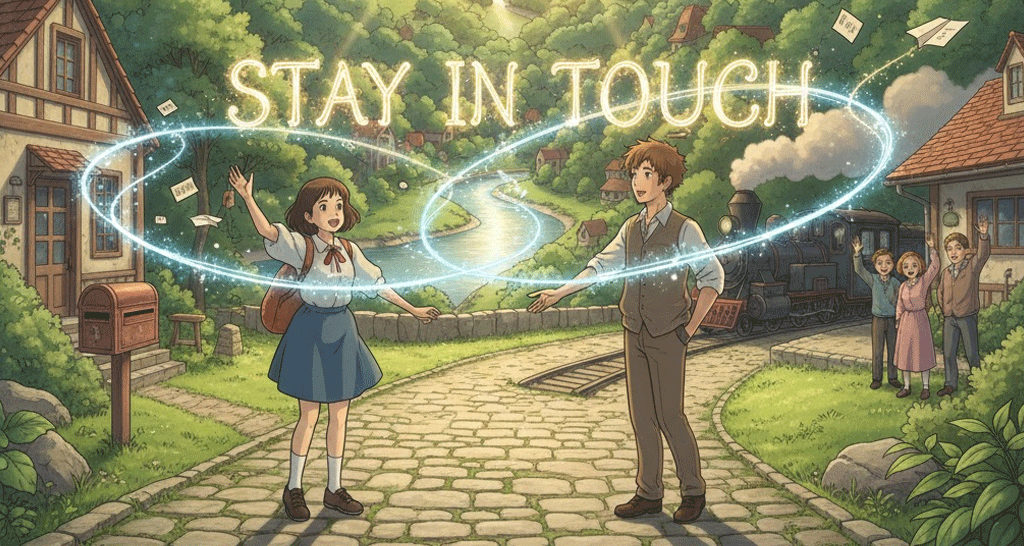 - 해석: 서로 멀리 떨어져 있어도 전화나 메시지 등을 통해 지속적으로 관계를 유지하다. (keep in touch와 동일)
