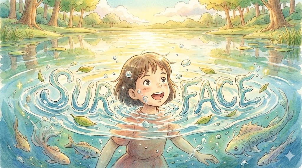 surface는 '가장 윗면' 이라는 의미를 통해, 물리적인 접촉면, 물의 수면, 그리고 깊은 내면과 대비되는 겉모습을 나타내며, 숨겨진 것이 드러나는 현상을 묘사할 때도 사용되는 단어입니다.