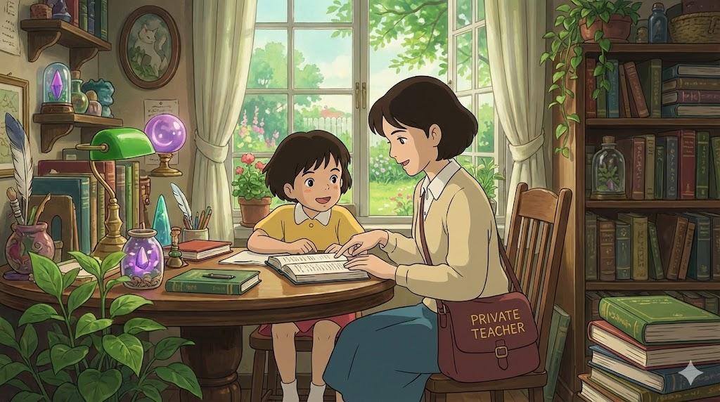 학교 밖에서 개인적으로 학생을 가르치는 교사를 의미합니다. 'tutor'와 유사하며, 1:1 맞춤형 지도를 제공합니다.