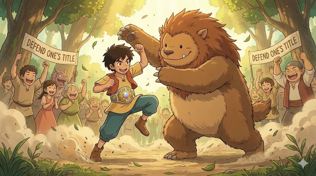 - 해석: 현재 챔피언이 도전자를 물리치고 우승자의 지위를 지키다.