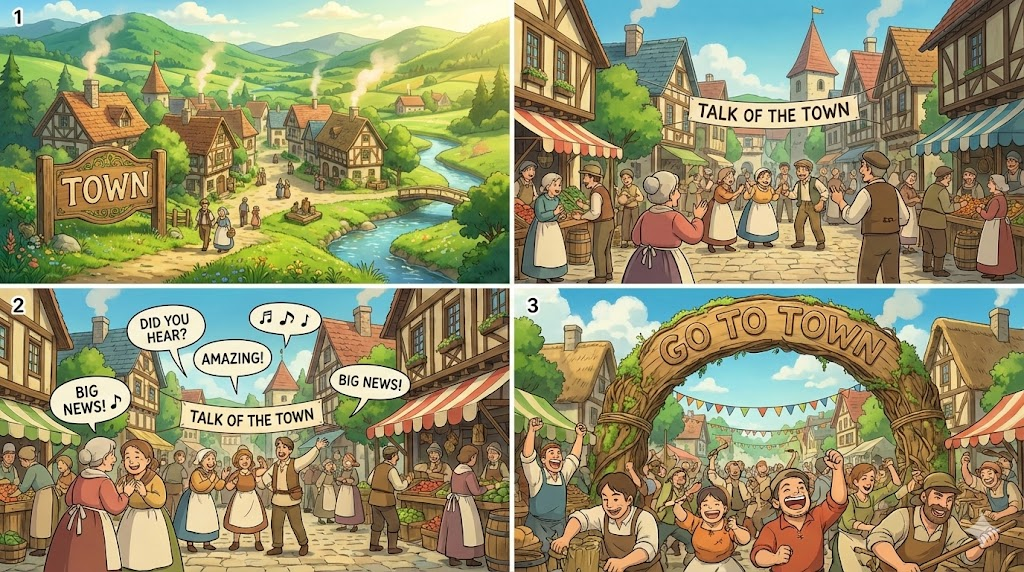 'town'은 '도시보다 작고 마을보다 큰' '행정 구역'이나 '번화가(시내)'를 의미하는 가장 기본적인 단어입니다. 'talk of the town'은 '사람들 입에 오르내리는' '장안의 화제'를 의미합니다. 'go to town'은 '어떤 일을' '신나게, 열정적으로, 혹은 돈을 아끼지 않고 하다'는 의미의 구어체 표현입니다. 'paint the town red'는 '술을 마시며' '신나게, 떠들썩하게 노는 것'을 의미합니다. 'out of town'은 '현재 사는 곳을 떠나' '타지에 있는' 상태를 나타냅니다.