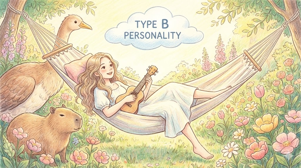 - 해석: 느긋하고, 비경쟁적이며, 유연한 성격 유형. (Type A와 대비)