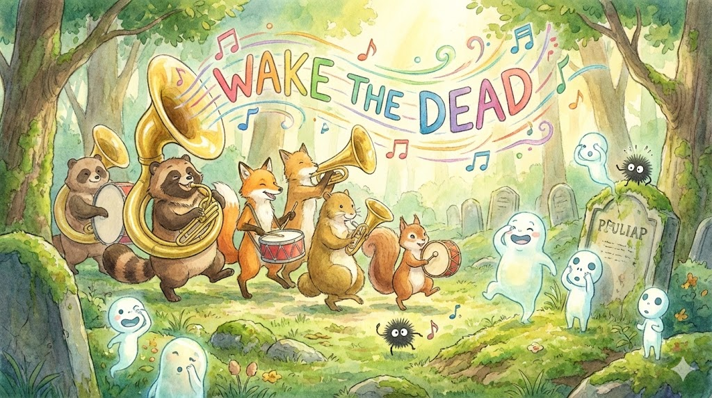 - 해석: 너무 시끄러워서 잠든 사람(심지어 죽은 사람까지도)을 깨울 정도라는 과장된 표현.