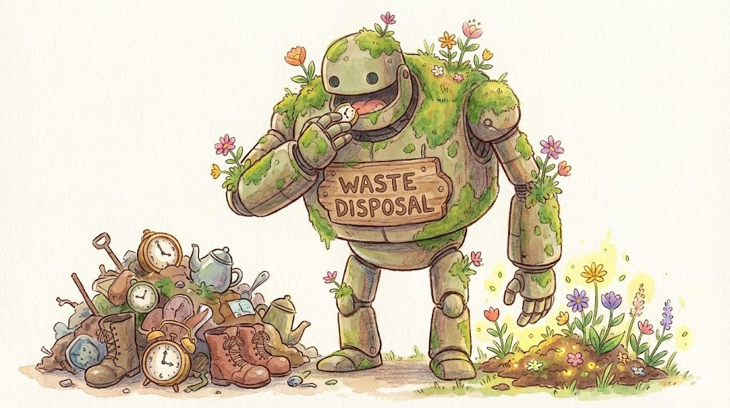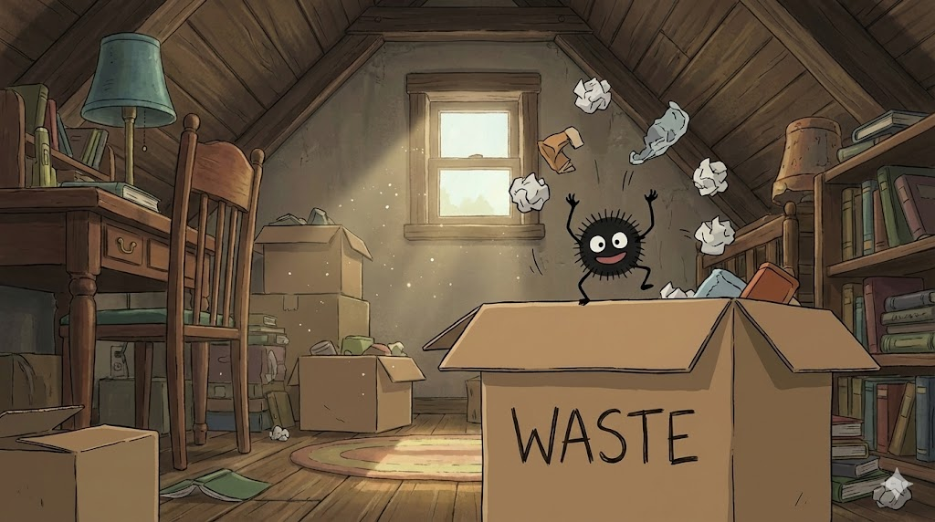 | 라틴어 vastāre (황폐하게 하다) | "가치 있는 것을 파괴/소모함" | 폐기물/쓰레기 (명사) → 낭비/허비 → (시간/돈을) 낭비하다 (동사) → 황무지 |