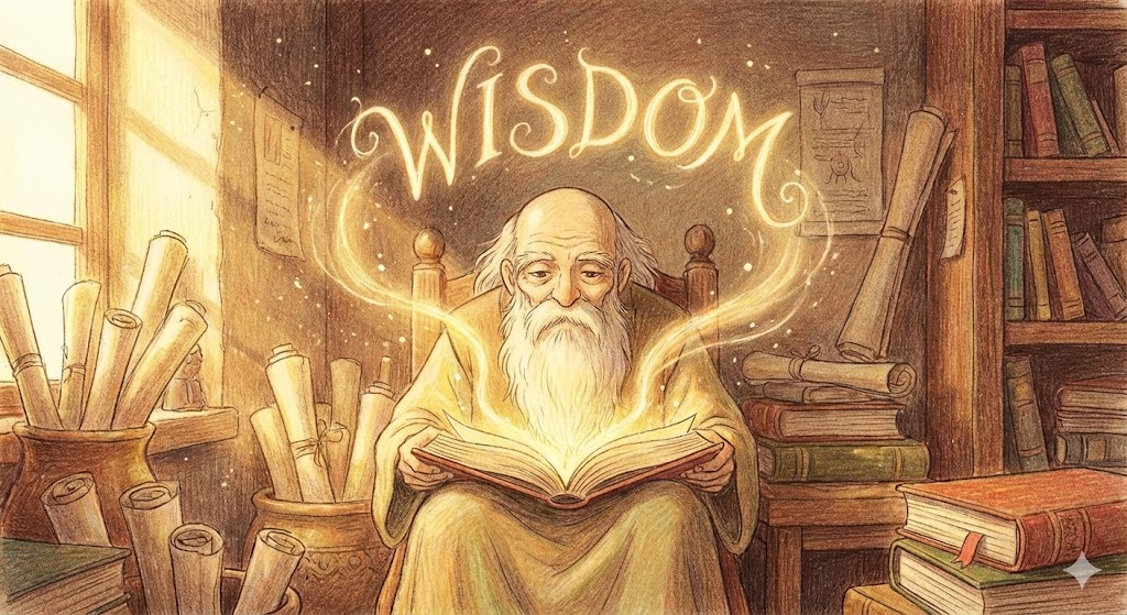 wisdom은 **'현명한(wise) 상태(-dom)'**라는 고대 영어에서 유래하여, 단순히 많은 사실을 아는 것(knowledge)을 넘어, 그 지식과 풍부한 경험을 통합하여 삶의 상황에 올바르게 적용하고 좋은 판단을 내리는 능력을 핵심 뉘앙스로 가집니다. 이는 **'현명함'**이라는 질적인 특성을 나타내는 개념입니다.