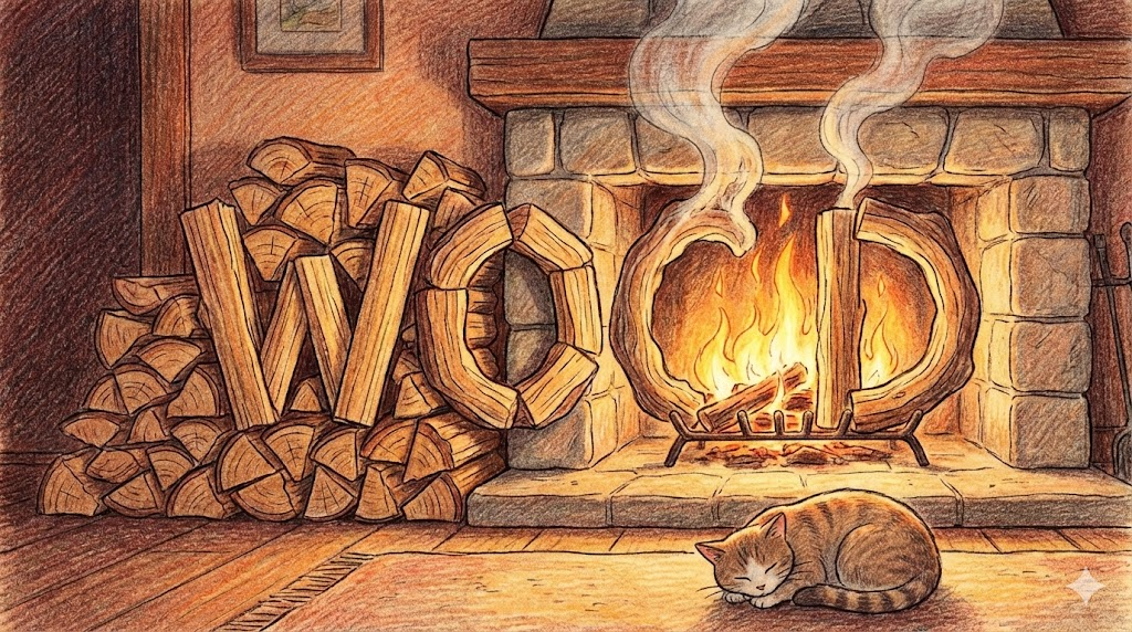 - 예문: The cabin was heated by a cozy wood fire in the stone fireplace. (그 오두막은 돌 벽난로의 아늑한 장작불로 난방되었다.)
