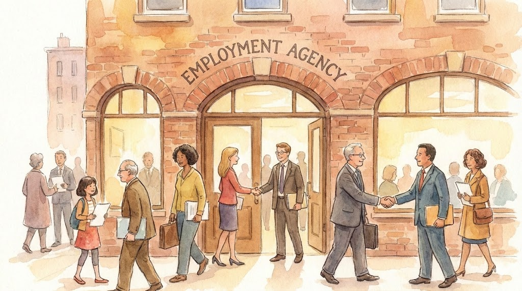 - 예문: He found a temporary job through an employment agency. (그는 직업 소개소를 통해 임시직을 구했다.)