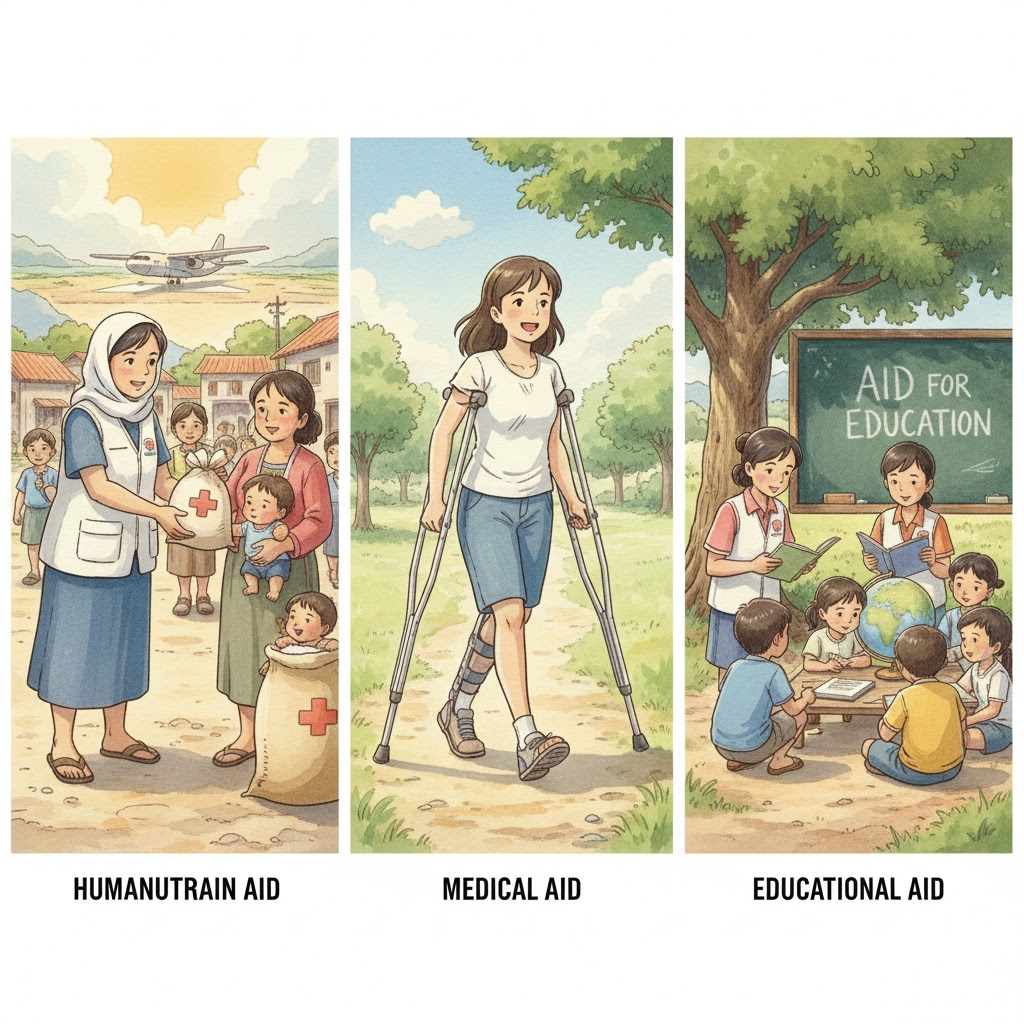 사회 지문에서 Foreign Aid와 Humanitarian Aid는 선진국의 도덕적 의무나 국제 협력을 논할 때 핵심 키워드입니다. 단순히 돈을 주는 것을 넘어, 자립을 돕는 방식의 원조가 효과적인지 논쟁하는 글에서 자주 볼 수 있습니다.