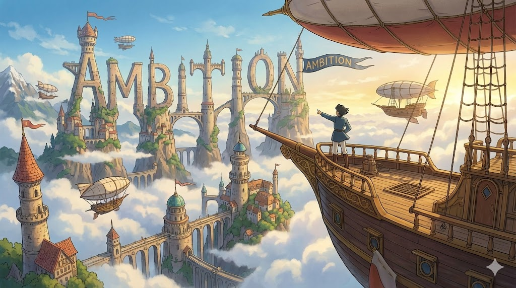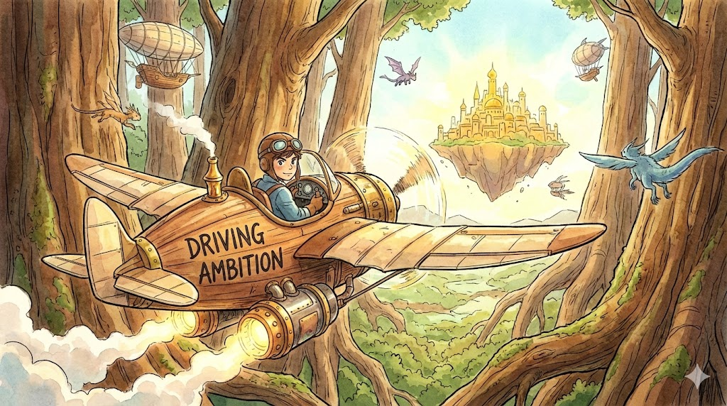 - 해석: 사람을 끊임없이 행동하게 만들고 앞으로 나아가게 하는 원동력이 되는 야망입니다.