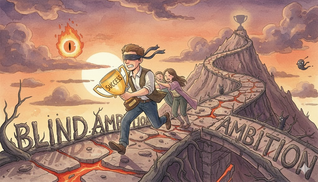 - 해석: 도덕이나 결과를 고려하지 않고 오로지 성공만을 쫓는 무모하고 위험한 야망입니다.