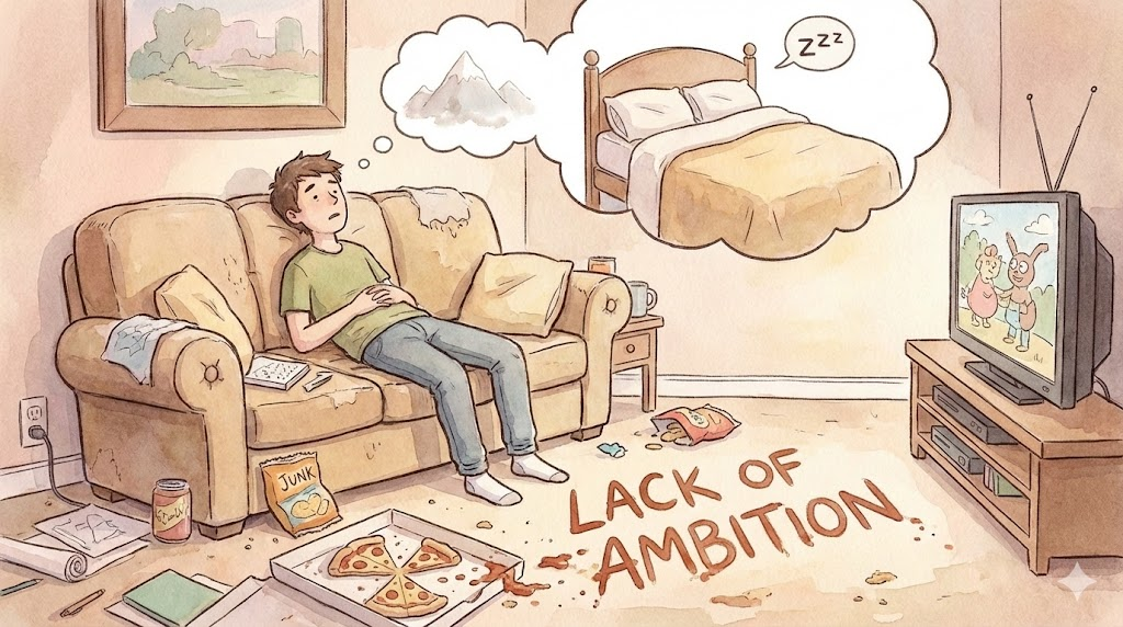 - 해석: 더 나은 상태로 나아가거나 성공하려는 의지가 부족한 상태를 뜻합니다.