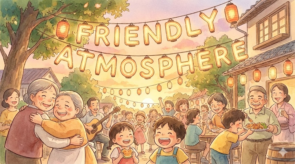 - The festival had a very friendly atmosphere. (그 축제는 매우 화기애애한(친근한) 분위기였다.)