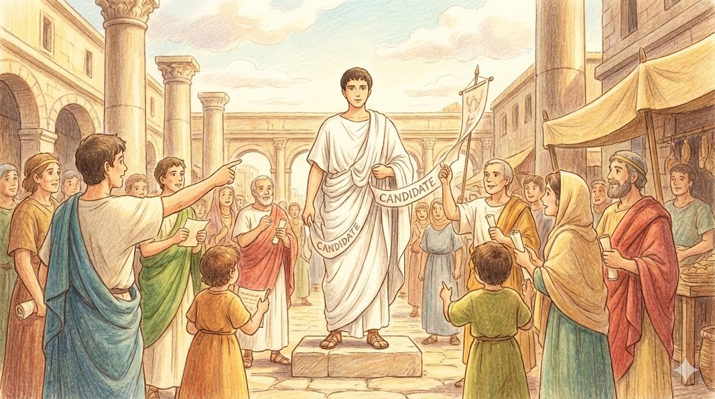 - 이 하얀 옷을 입은 사람을 'Candidatus' 라고 불렀고, 이것이 오늘날의 Candidate(후보자) 가 되었습니다.