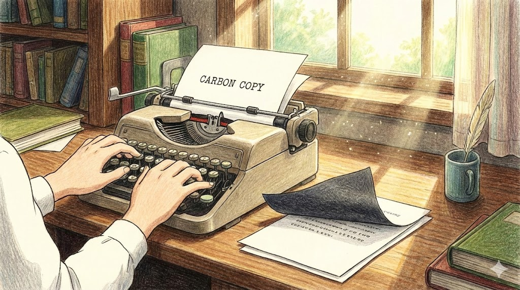 - 해석: 먹지(carbon paper)를 대고 쓴 사본이라는 뜻에서, 아주 똑같은 복사본이나 사람을 의미합니다. 이메일의 '참조(CC)' 가 바로 여기서 유래했습니다.