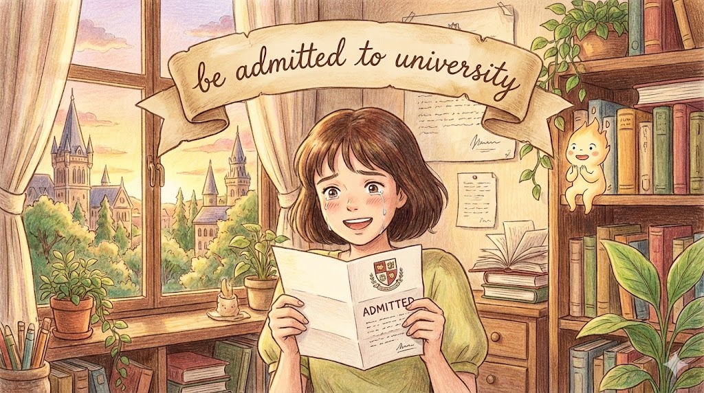 be admitted to university [bi ədˈmɪtɪd tu ˌjuːnɪˈvɜːrsəti]