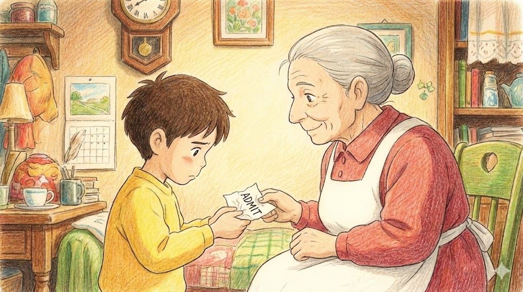 admit은 잠겨 있던 극장의 문을 열어 관객을 맞이하듯, 혹은 굳게 닫힌 자존심의 문을 열고 "그래, 내가 그랬어"라는 진실을 내 안으로 '들여보내는' 용기 있는 행위입니다.