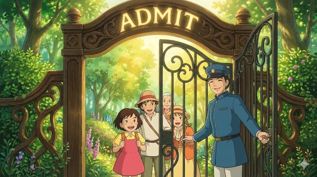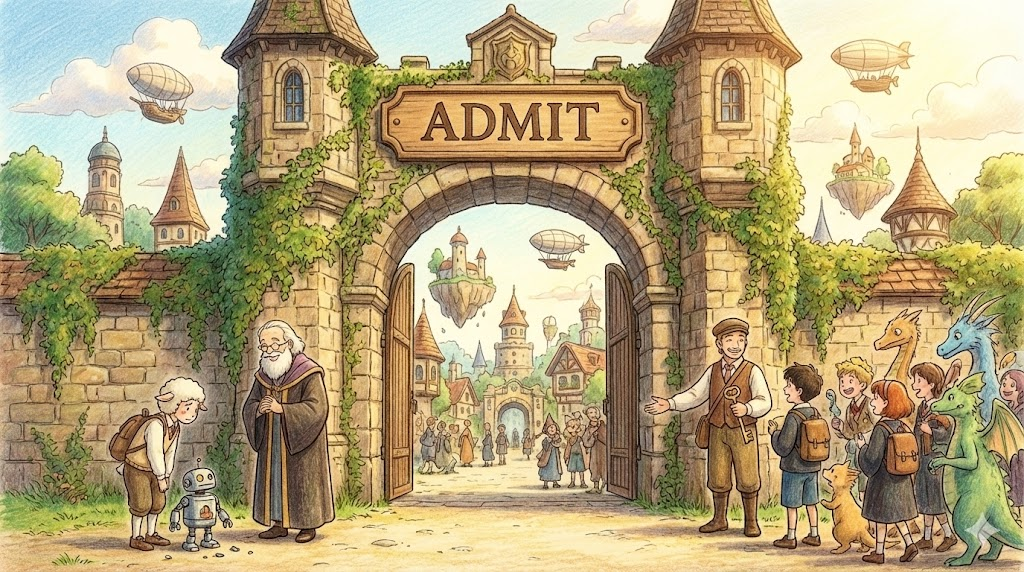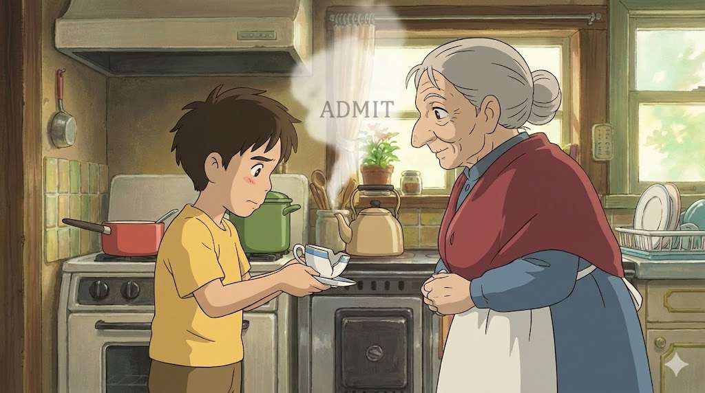 | 라틴어 admittere (들여보내다) | "문/마음을 염" | 입장을 허가하다 (물리적) → 입학/입원시키다 (조직/시설) → (사실을) 인정하다 (심리적 수용) |