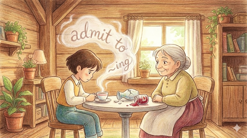 admit to ~ing는 문법적으로 중요한데, admit 뒤에 동사가 올 때 동명사(-ing) 를 취하여 '~했음을 인정하다' 라고 씁니다 (예: admit to stealing).