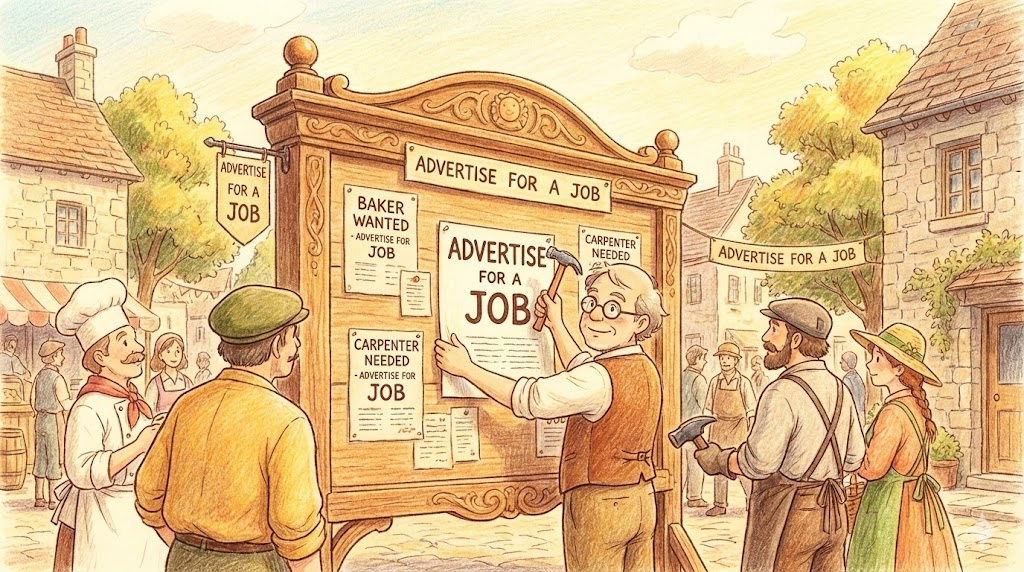 - 해석: 문맥에 따라 두 가지로 해석됩니다. 직원을 구하기 위해 광고를 내는 것일 수도 있고, 반대로 일자리를 찾기 위해 자신을 홍보하는 것일 수도 있지만, 주로 "직원을 구한다"는 뜻으로 많이 쓰입니다. (Advertise for staff)