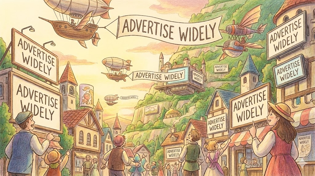 'advertise'는 알리는 행위입니다. 'word-of-mouth'는 신뢰를, 'false advertising'은 불신을 줍니다. 'It pays to advertise'는 적극성의 가치를 일깨워줍니다.