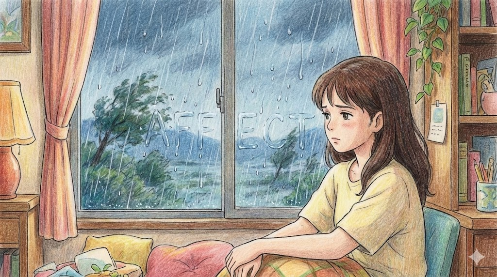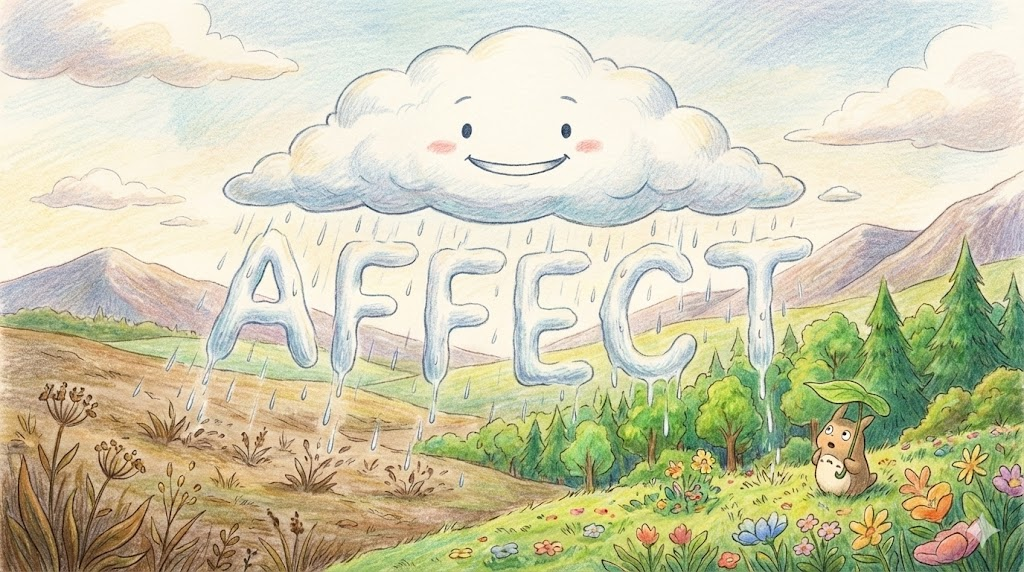- Affect (동사): 영향을 '주다' (Action). "A가 B를 건드림."