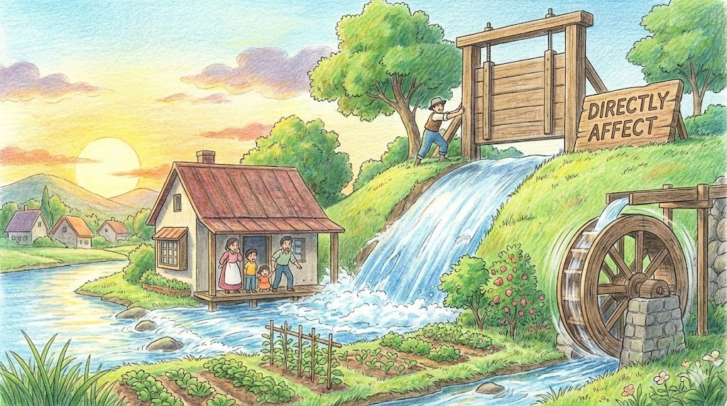 중간 과정 없이 결과가 바로 나에게 닥칠 때 씁니다. 남의 이야기가 아니라 "내 월급이 깎인다", "우리 집 앞이 공사장이 된다"처럼 피부로 와닿는 즉각적인 영향을 강조합니다.