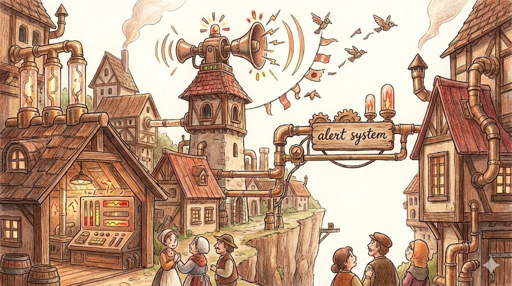 지진, 쓰나미, 화재 등 재난이 발생했을 때 자동으로 감지해서 사람들에게 위험을 알려주는 전체적인 장비나 프로그램을 말합니다. IT에서는 서버가 다운되었을 때 관리자에게 문자를 보내주는 기능도 이에 해당합니다.