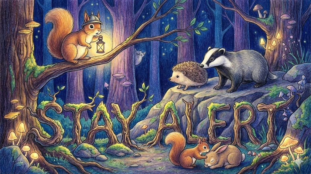 'alert'는 '깨어있는 상태(기민함)'와 '위험 신호(경보)' 두 가지를 기억해야 합니다. 사람은 stay alert해야 하고, 시스템은 red alert를 울립니다. 영화 이야기 전엔 spoiler alert를 잊지 마세요.