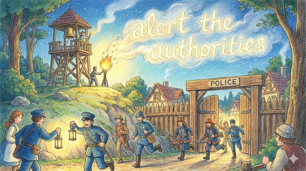 alert the authorities [əˈlɜːrt ði əˈθɔːrətiz]