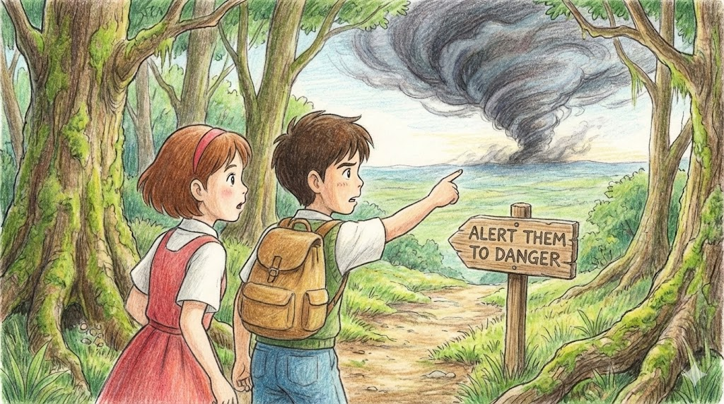 - 해석: 영화나 책의 결말(스포일러)을 말하기 전에, 듣기 싫은 사람은 피하라고 미리 경고하는 문구입니다.