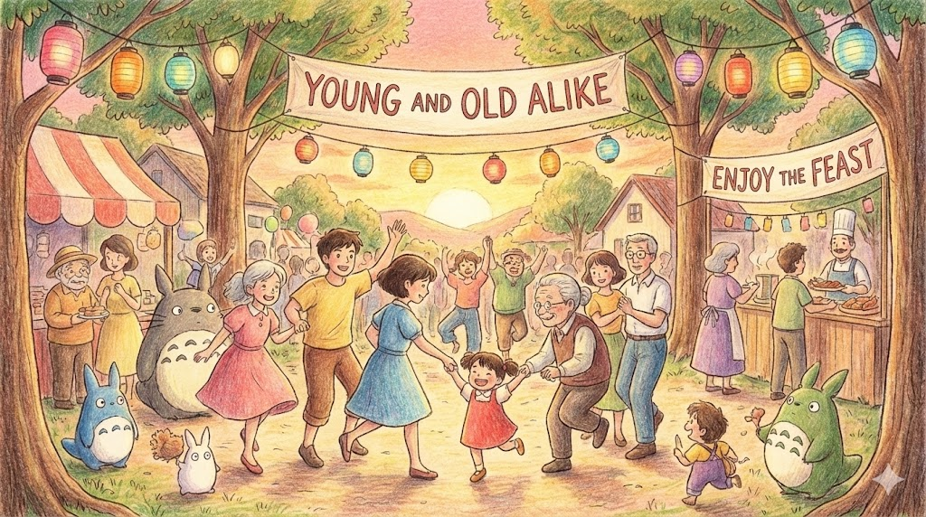 - The festival is enjoyed by young and old alike. (그 축제는 남녀노소 누구나 똑같이 즐긴다.)