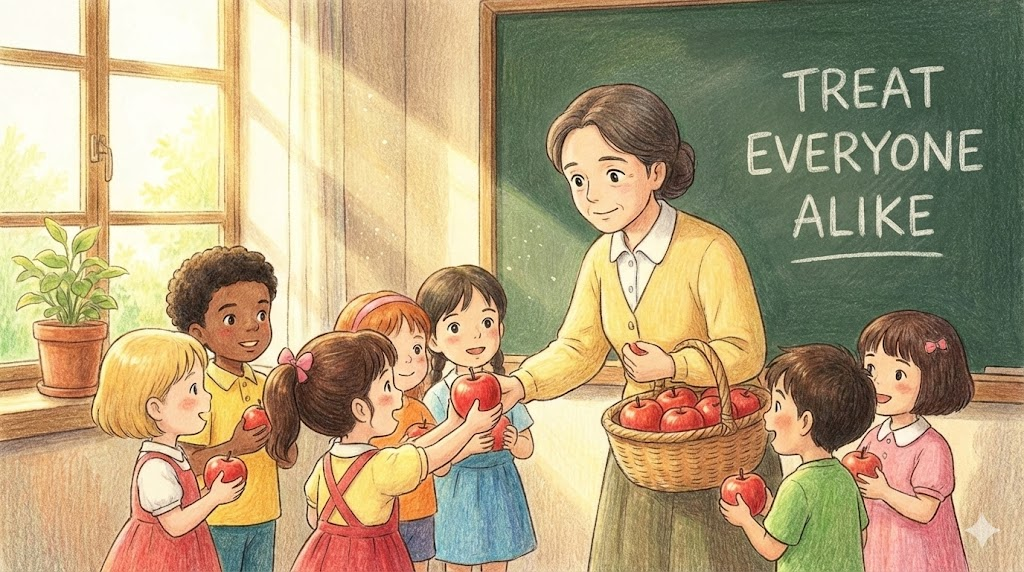 - A teacher should treat all students alike, without favoritism. (교사는 편애 없이 모든 학생을 똑같이 대우해야 한다.)