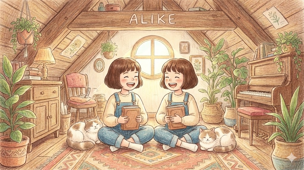 두 대상이 성격, 외모, 혹은 행동 면에서 서로 구별하기 힘들 정도로 닮았거나(Similar), 사람을 차별하지 않고 공평하게(Equally) 대할 때 씁니다. 주의할 점은 'an alike book'처럼 명사 앞에는 잘 안 쓰고, "The books are alike"처럼 서술적으로 주로 씁니다.