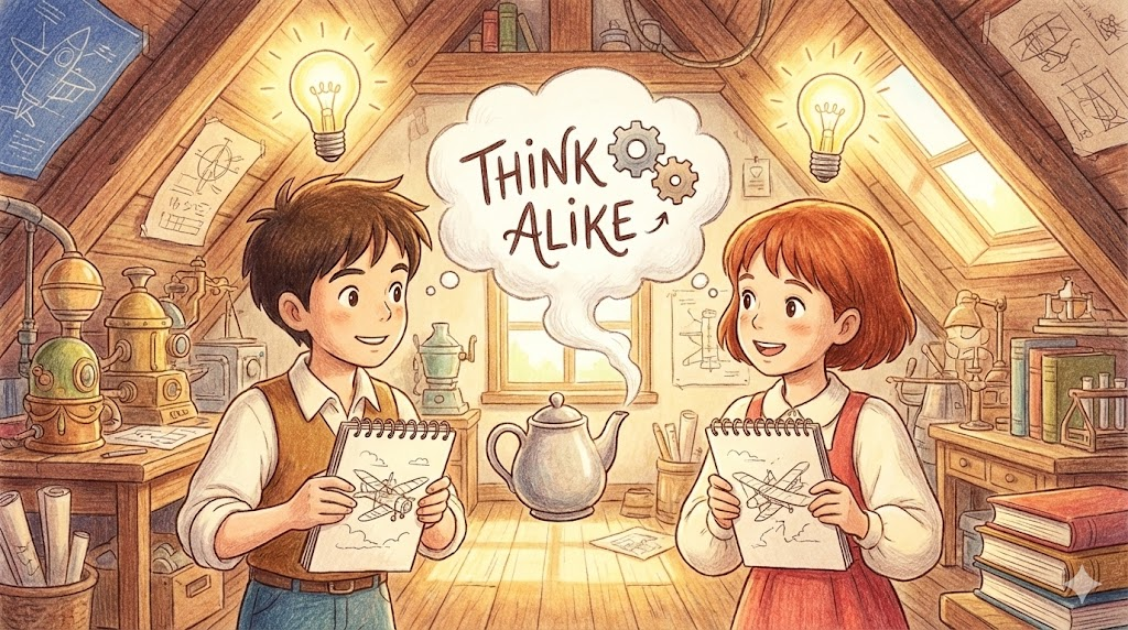 think alike [θɪŋk əˈlaɪk]