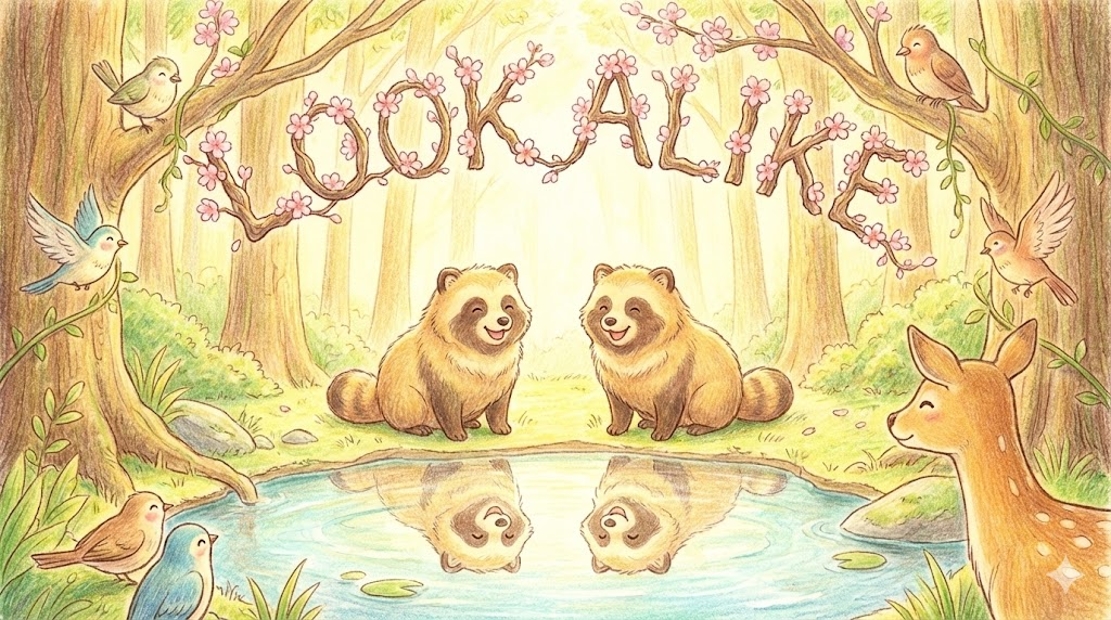 - look-alike [ˈlʊk əlaɪk] (명사): 닮은꼴, 도플갱어 (유명인을 닮은 사람)