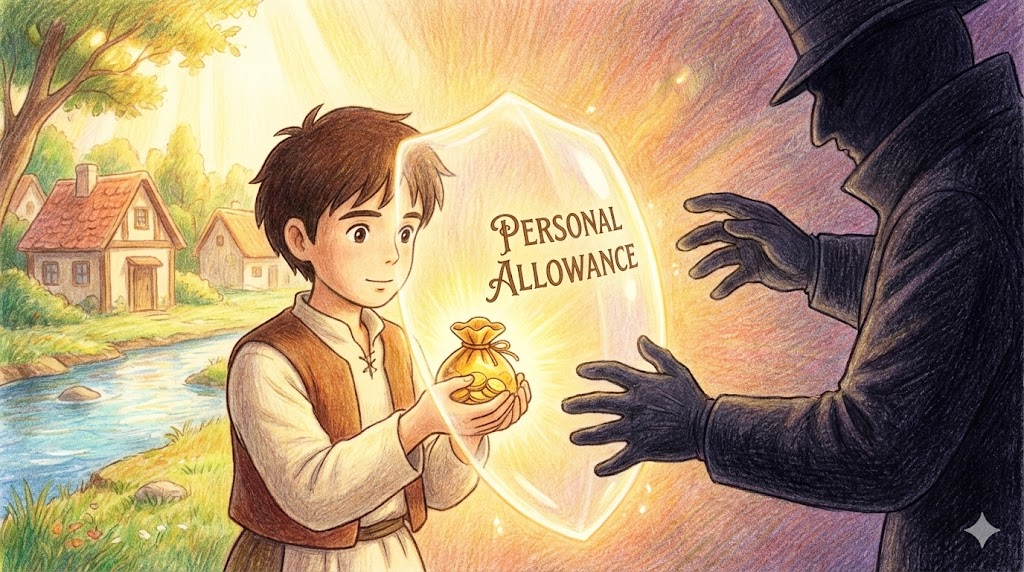 personal allowance는 세금을 내지 않아도 되는 소득의 한도인 '기초 공제(인적 공제)'를 뜻합니다(주로 영국 세법 용어).