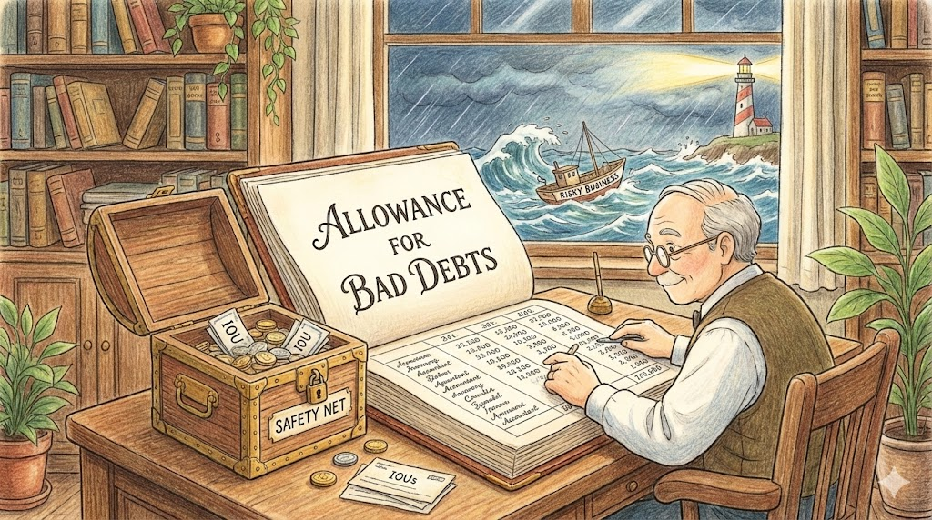 회계나 비즈니스에서 쓰는 전문 용어입니다. 물건을 외상으로 팔았는데 거래처가 망하거나 도망가서 돈을 못 받을 상황(Bad debts)을 대비해, 미리 손해 볼 셈 치고 떼어 놓는 돈을 말합니다.