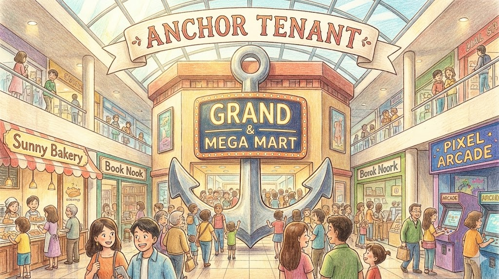 - 해석: 쇼핑몰이나 상가에 손님을 끌어모으는 역할을 하는 대형 백화점, 영화관, 대형 마트 등의 핵심 입주 업체입니다.