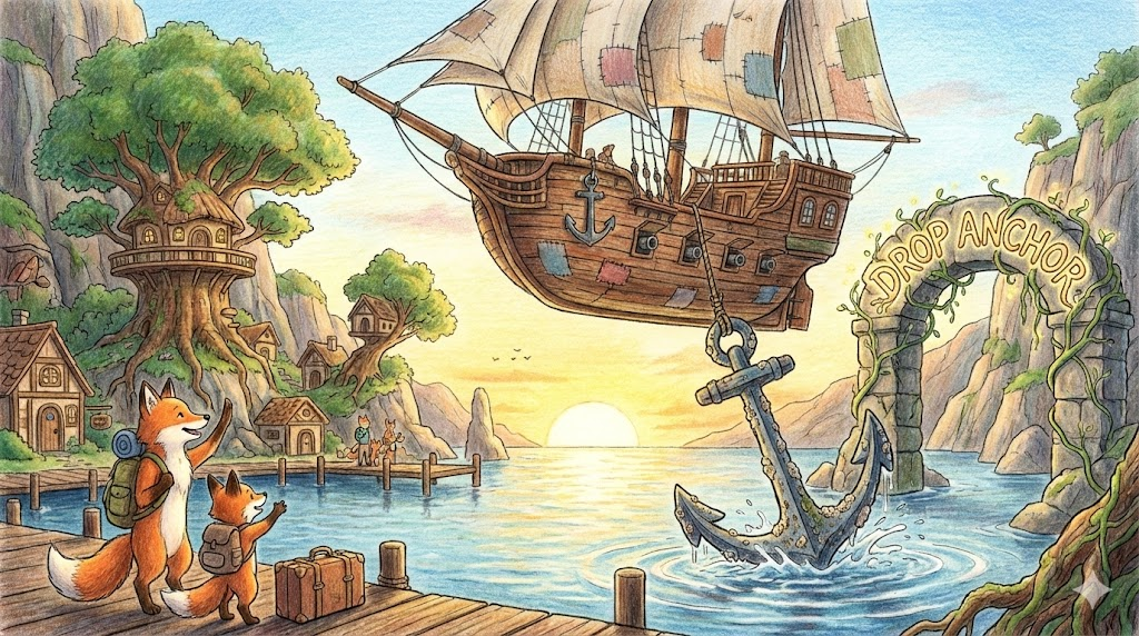 - Drop anchor: 도착 (Arrival)