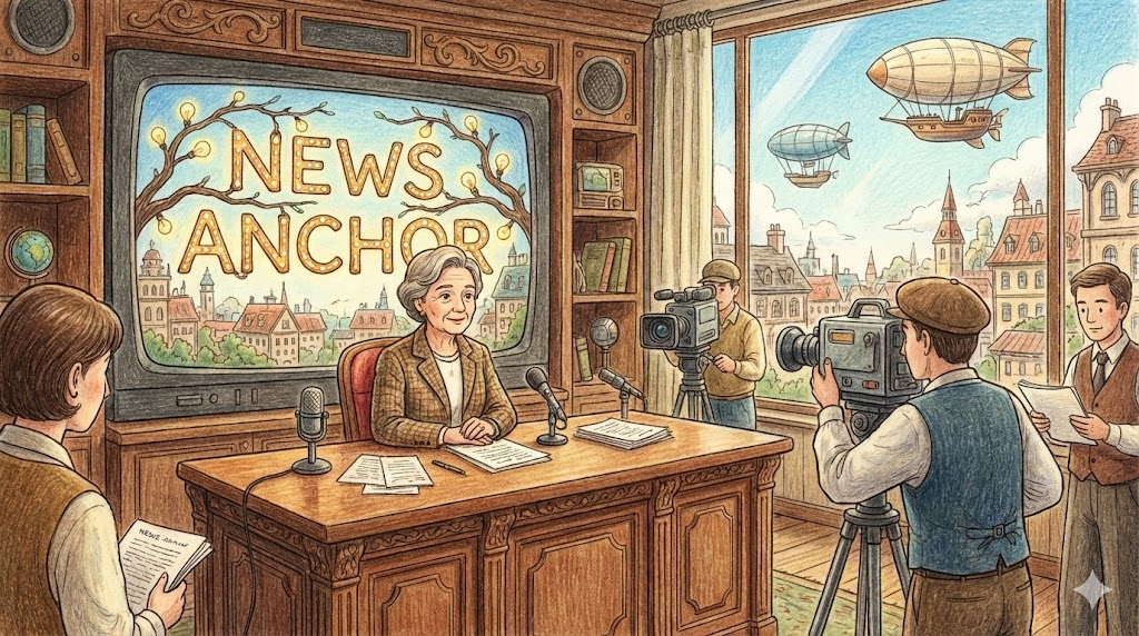 - 해석: 현장 기자들을 연결하고 뉴스를 종합하여 전달하는 메인 진행자입니다. (Anchorman/Anchorwoman)
